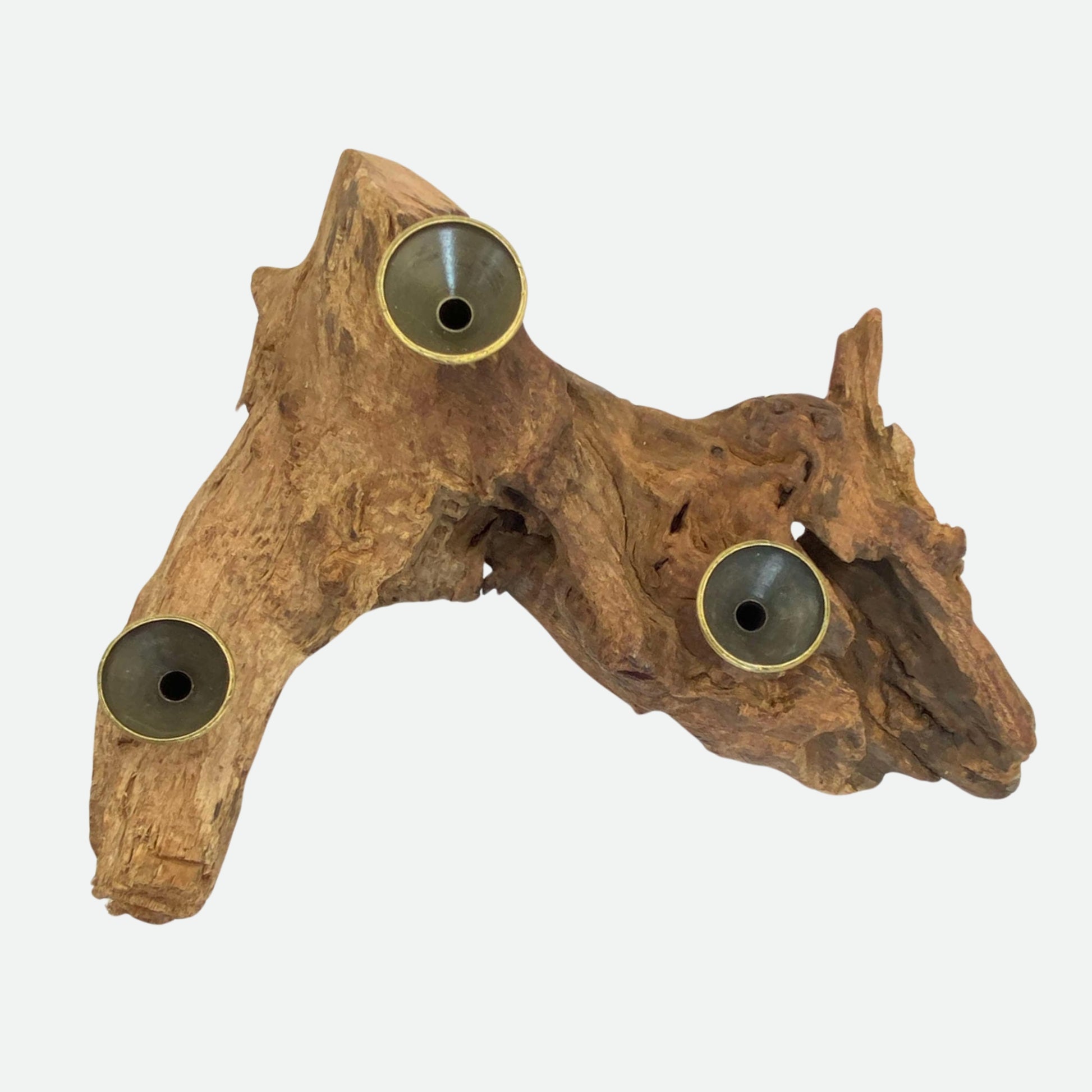 One-of-a-kind natural wood sphere stand. Holds 3 spheres.