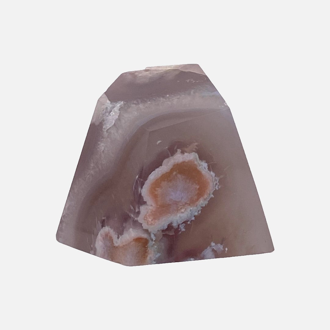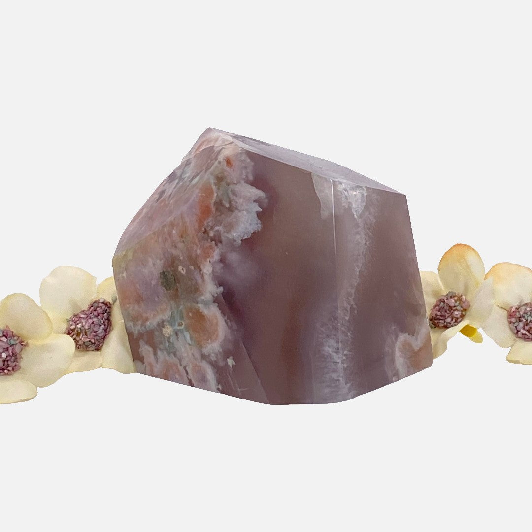Discovered in Madagascar, Flower Agate is the stone of personal growth. This captivating gem is a crystal of manifesting our potential, fighting fear, and laying the foundation for meaningful growth. It's a grounding stone well known for being deeply connected to the Heart chakra, promoting spontaneity and joy. It helps us reach our highest potential, protecting us from fears and self-doubt. Its energy ignites a passion to pursue dreams and live life to the fullest.