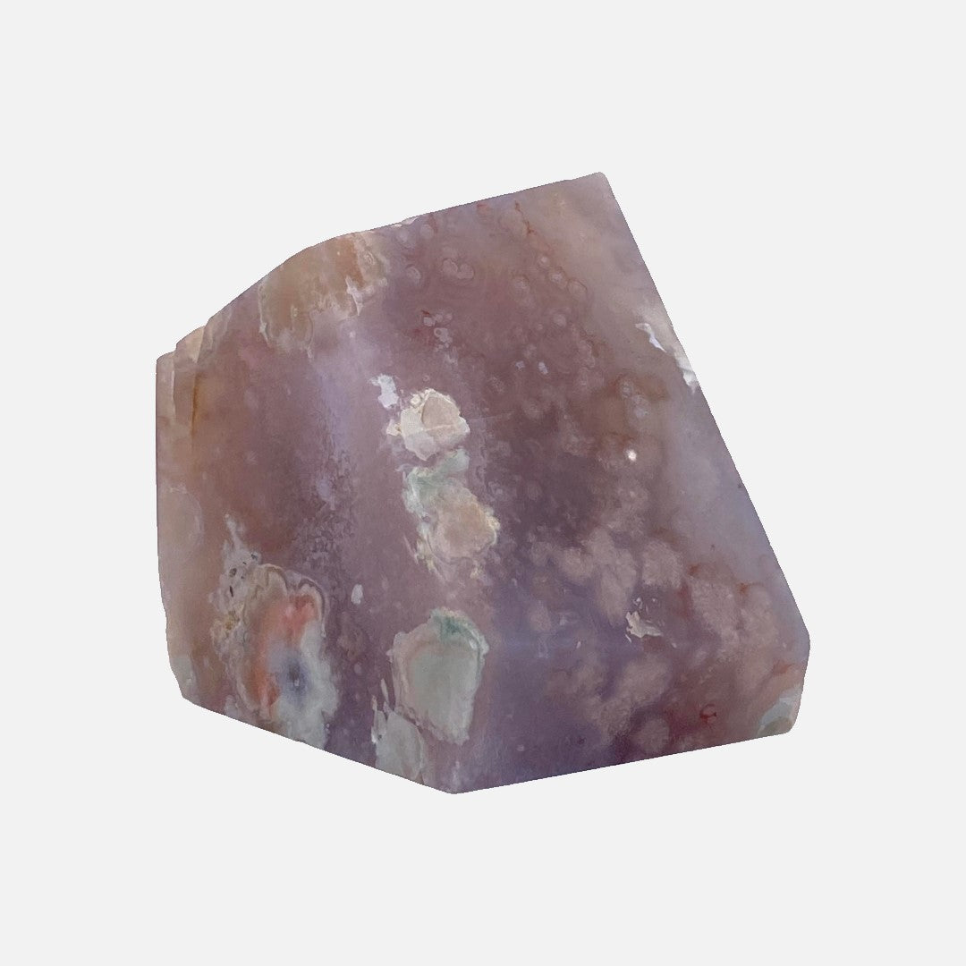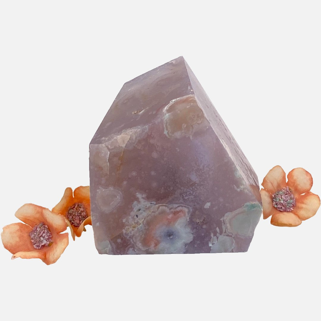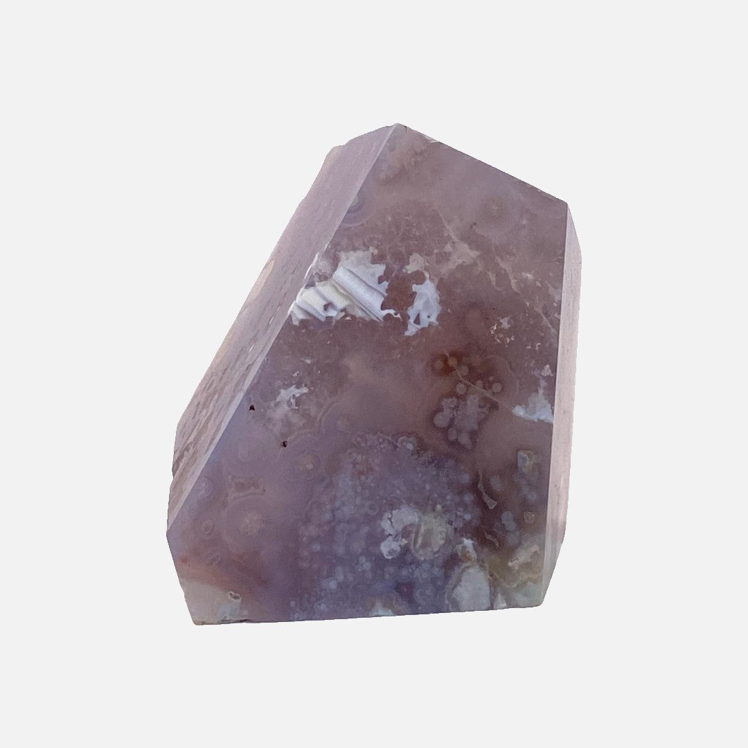 Discovered in Madagascar, Flower Agate is the stone of personal growth. This captivating gem is a crystal of manifesting our potential, fighting fear, and laying the foundation for meaningful growth. It's a grounding stone well known for being deeply connected to the Heart chakra, promoting spontaneity and joy. It helps us reach our highest potential, protecting us from fears and self-doubt. Its energy ignites a passion to pursue dreams and live life to the fullest.