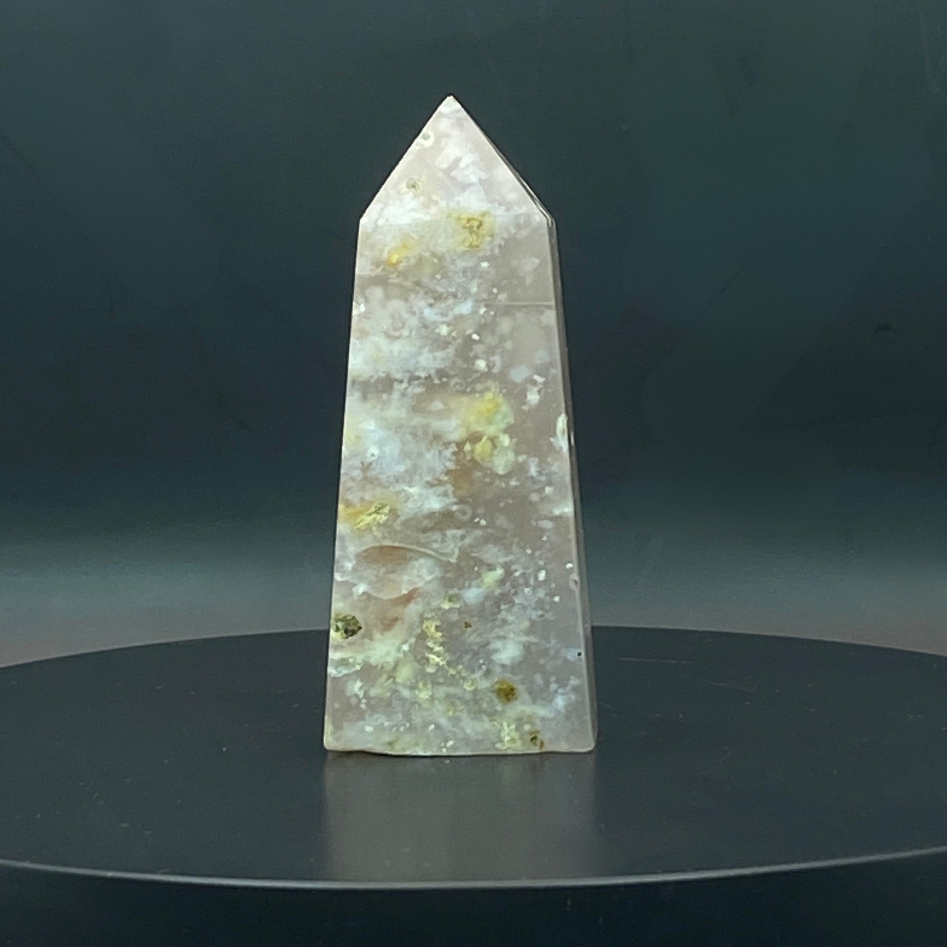 Discovered in Madagascar, Flower Agate is the stone of personal growth. This captivating gem is a crystal of manifesting our potential, fighting fear, and laying the foundation for meaningful growth. It's a grounding stone well known for being deeply connected to the Heart chakra, promoting spontaneity and joy. It helps us reach our highest potential, protecting us from fears and self-doubt. Its energy ignites a passion to pursue dreams and live life to the fullest.