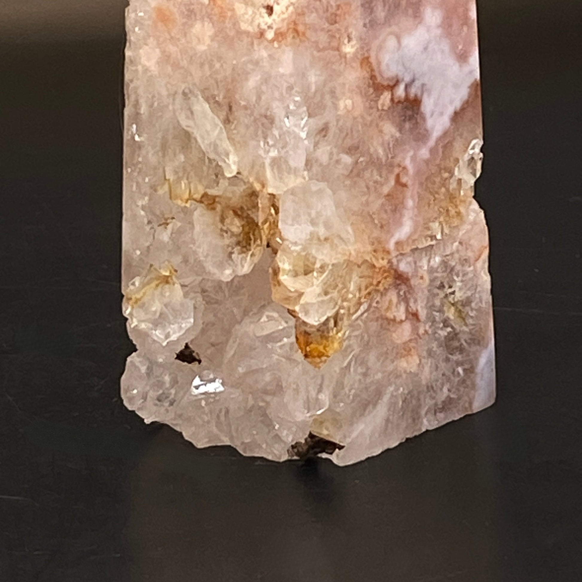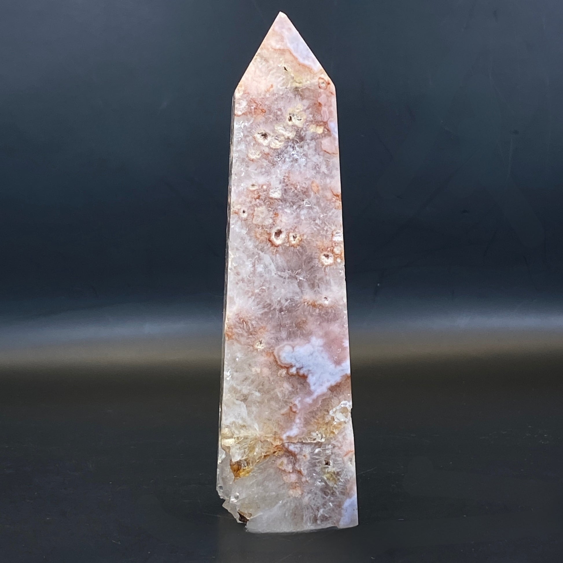 Discovered in Madagascar, Flower Agate is the stone of personal growth. This captivating gem is a crystal of manifesting our potential, fighting fear, and laying the foundation for meaningful growth. It's a grounding stone well known for being deeply connected to the Heart chakra, promoting spontaneity and joy. It helps us reach our highest potential, protecting us from fears and self-doubt. Its energy ignites a passion to pursue dreams and live life to the fullest.