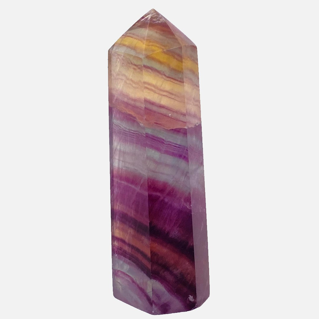 Fluorite is said to absorb and neutralize negative vibrations. It makes one more receptive to the vibrations of other stones. Known as the 'genius stone', it increases concentration and helps in decision-making. A highly protective and stabilising stone, useful for grounding and harmonising spiritual energy.