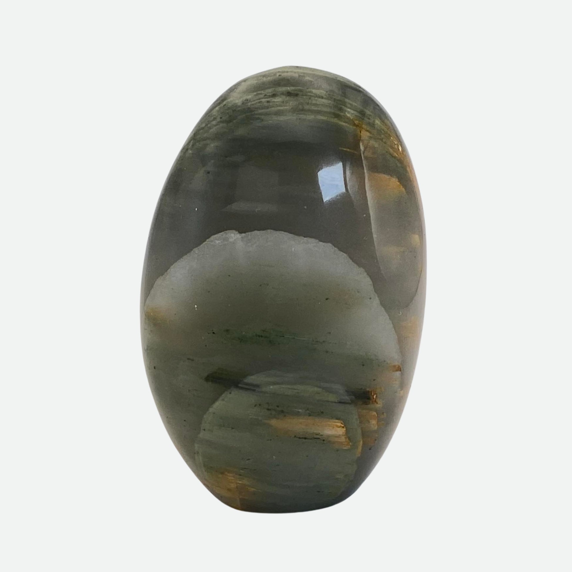 Green Agate is a type of silica mineral that is highly sought after for its vibrant colours. Its varying shades of green can appear almost translucent, like the depths of an enchanted forest, or deep and opaque. Throughout the ages, it's been used in jewellery, sculptures, and other decorative items. Ancient Egyptians used it to create statues and artwork, while Ancient Greeks believed it held magical powers, and even included it in their mythology. Associated with the Heart chakra, it promotes strong feelings of harmony, health and abundance, and its calming energy aids with emotional stability. The perfect stone to help soothe anxiety and reduce stress.