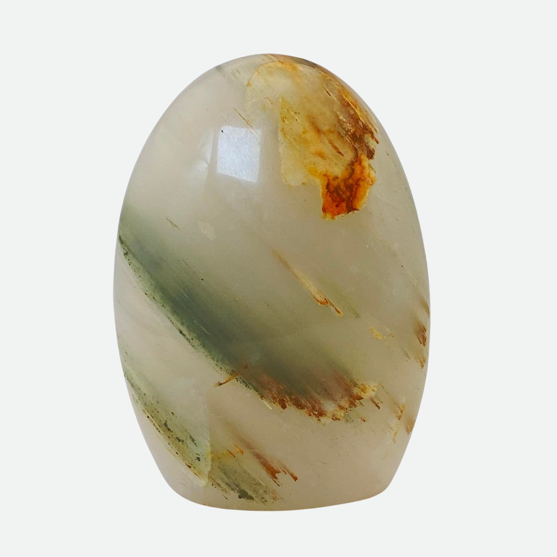 Green Agate is a type of silica mineral that is highly sought after for its vibrant colours. Its varying shades of green can appear almost translucent, like the depths of an enchanted forest, or deep and opaque. Throughout the ages, it's been used in jewellery, sculptures, and other decorative items. Ancient Egyptians used it to create statues and artwork, while Ancient Greeks believed it held magical powers, and even included it in their mythology. Associated with the Heart chakra, it promotes strong feelings of harmony, health and abundance, and its calming energy aids with emotional stability. The perfect stone to help soothe anxiety and reduce stress.