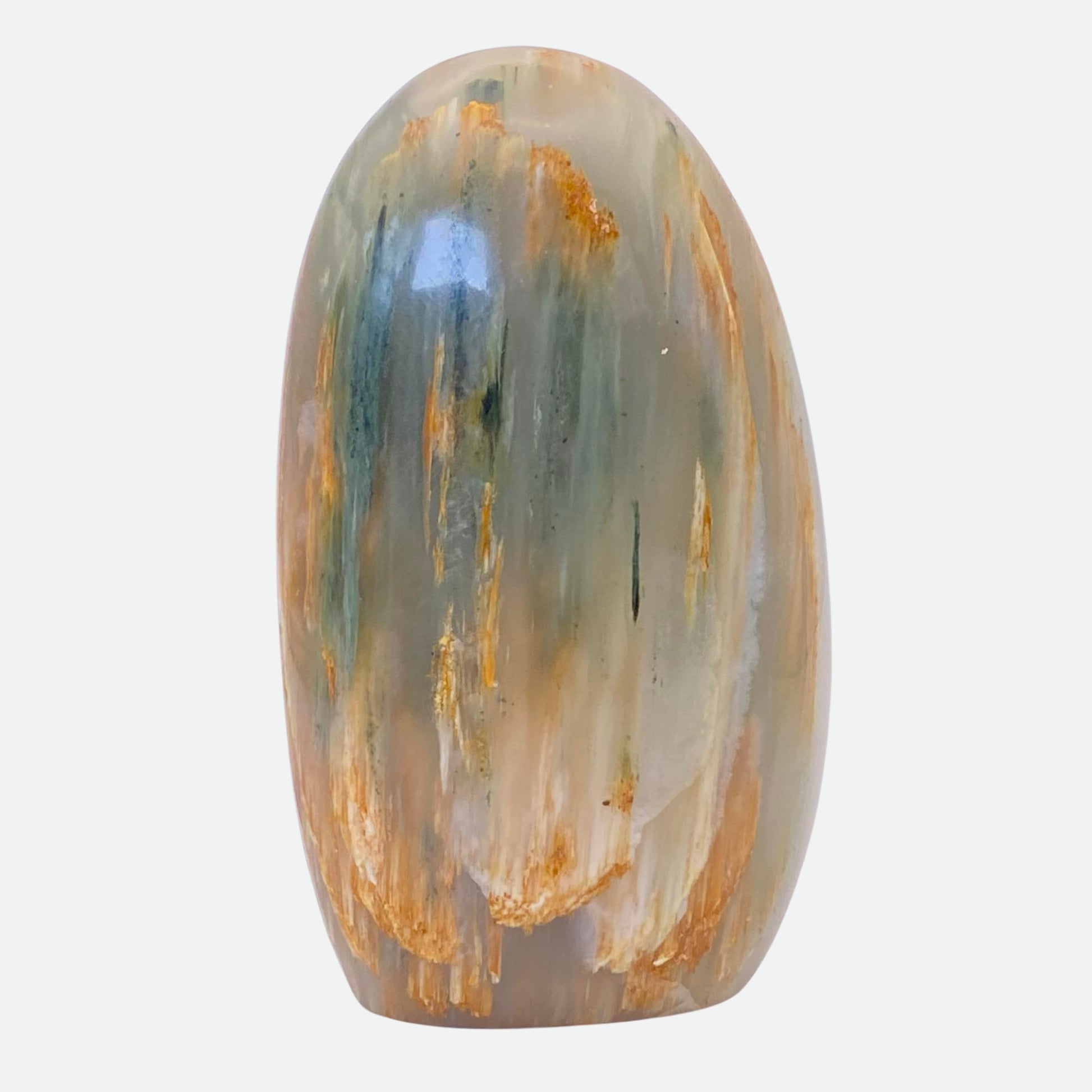 We were only able to aquire a small batch of these fabulous freeforms, but we felt so lucky to have been in the right place at the right time. Every one of them has entrancing Petrified Wood inclusions, and the pure uniqueness of each piece is not something we've seen often. We hope you love them as much as we dođź©·