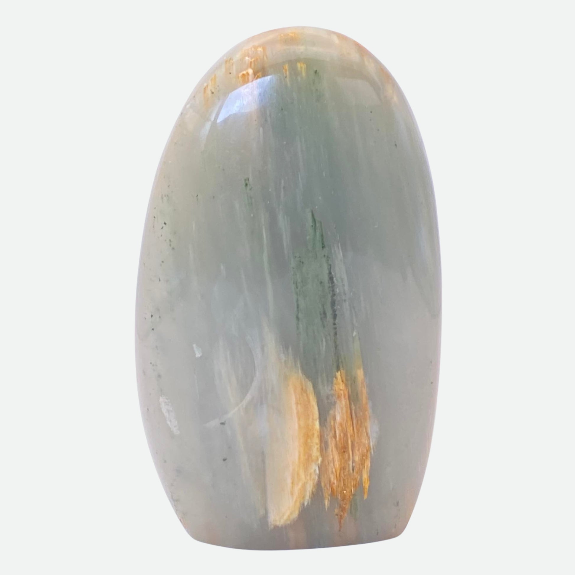 Green Agate is a type of silica mineral that is highly sought after for its vibrant colours. Its varying shades of green can appear almost translucent, like the depths of an enchanted forest, or deep and opaque. Throughout the ages, it's been used in jewellery, sculptures, and other decorative items. Ancient Egyptians used it to create statues and artwork, while Ancient Greeks believed it held magical powers, and even included it in their mythology. Associated with the Heart chakra, it promotes strong feelings of harmony, health and abundance, and its calming energy aids with emotional stability. The perfect stone to help soothe anxiety and reduce stress.