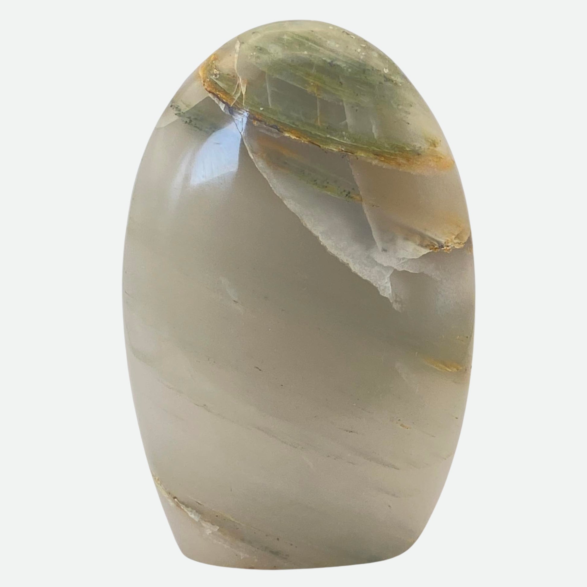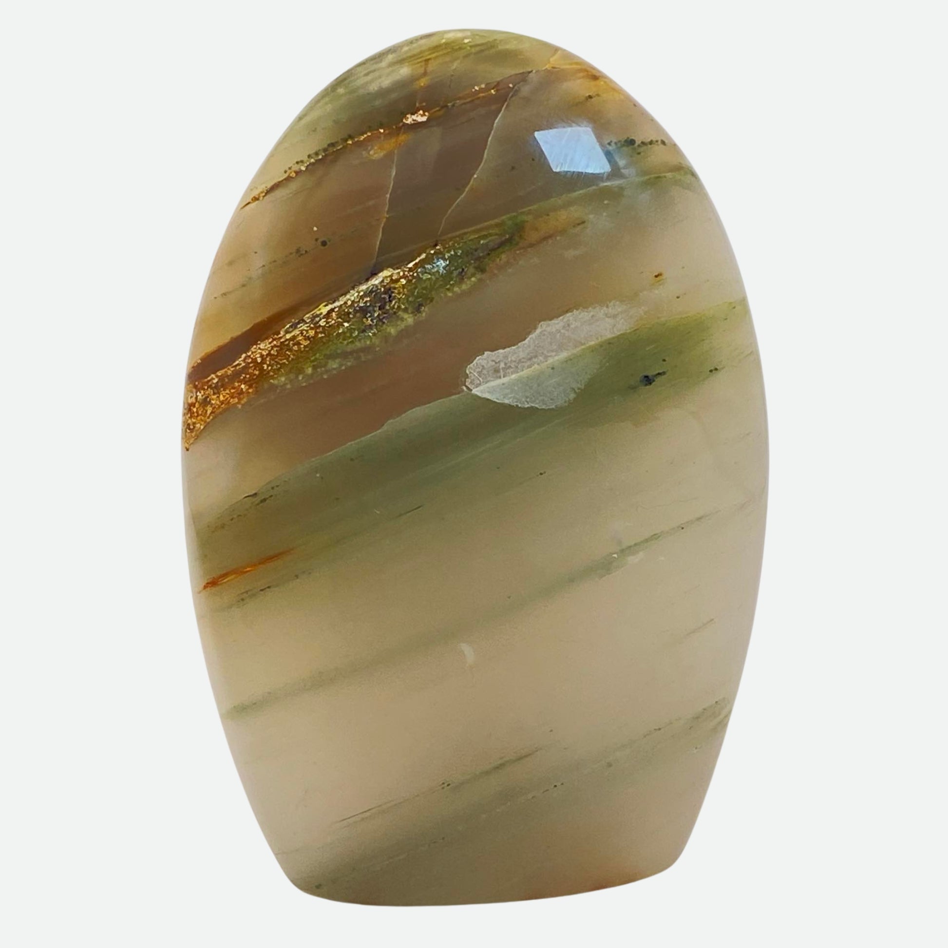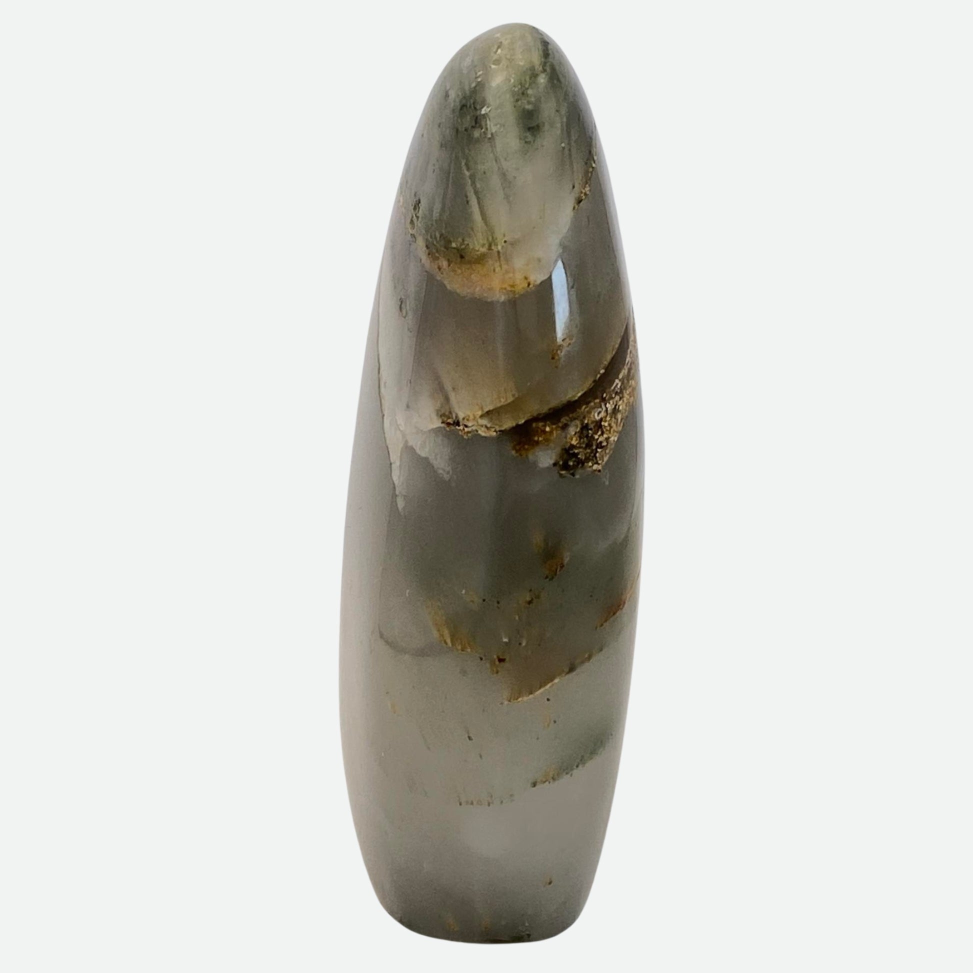 Green Agate is a type of silica mineral that is highly sought after for its vibrant colours. Its varying shades of green can appear almost translucent, like the depths of an enchanted forest, or deep and opaque. Throughout the ages, it's been used in jewellery, sculptures, and other decorative items. Ancient Egyptians used it to create statues and artwork, while Ancient Greeks believed it held magical powers, and even included it in their mythology. Associated with the Heart chakra, it promotes strong feelings of harmony, health and abundance, and its calming energy aids with emotional stability. The perfect stone to help soothe anxiety and reduce stress.
