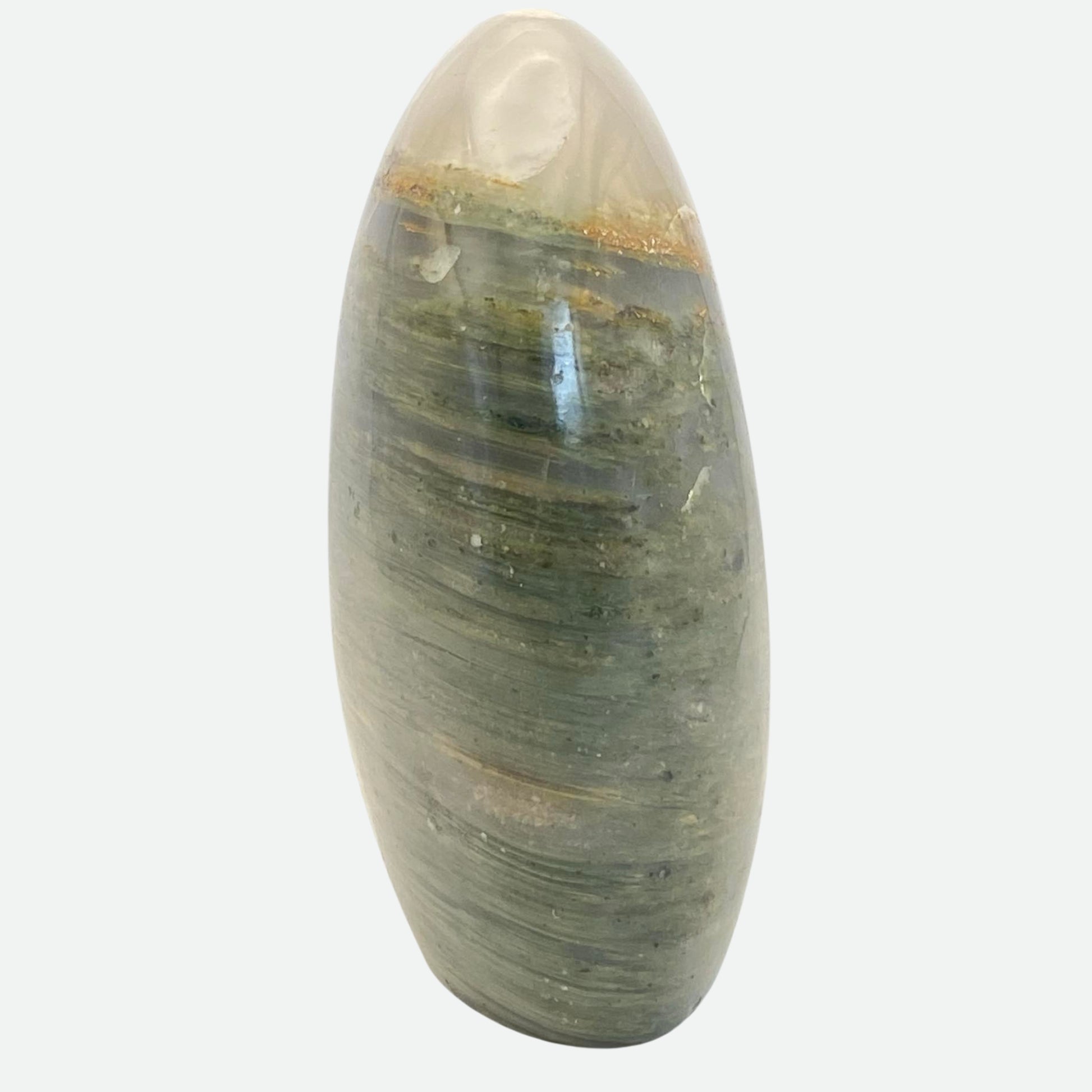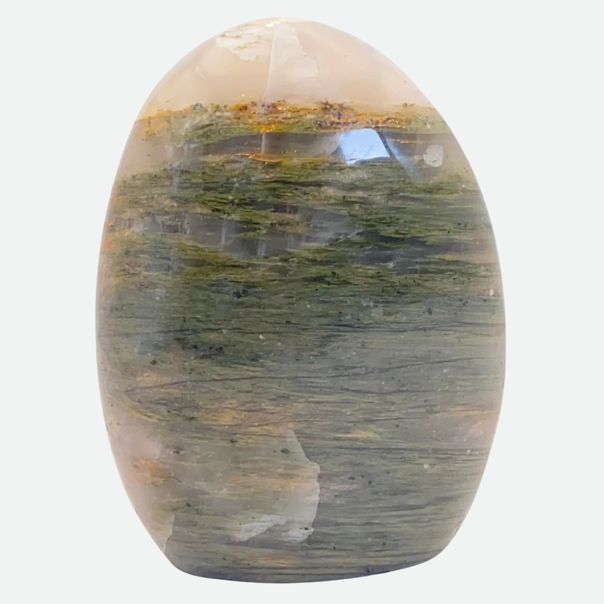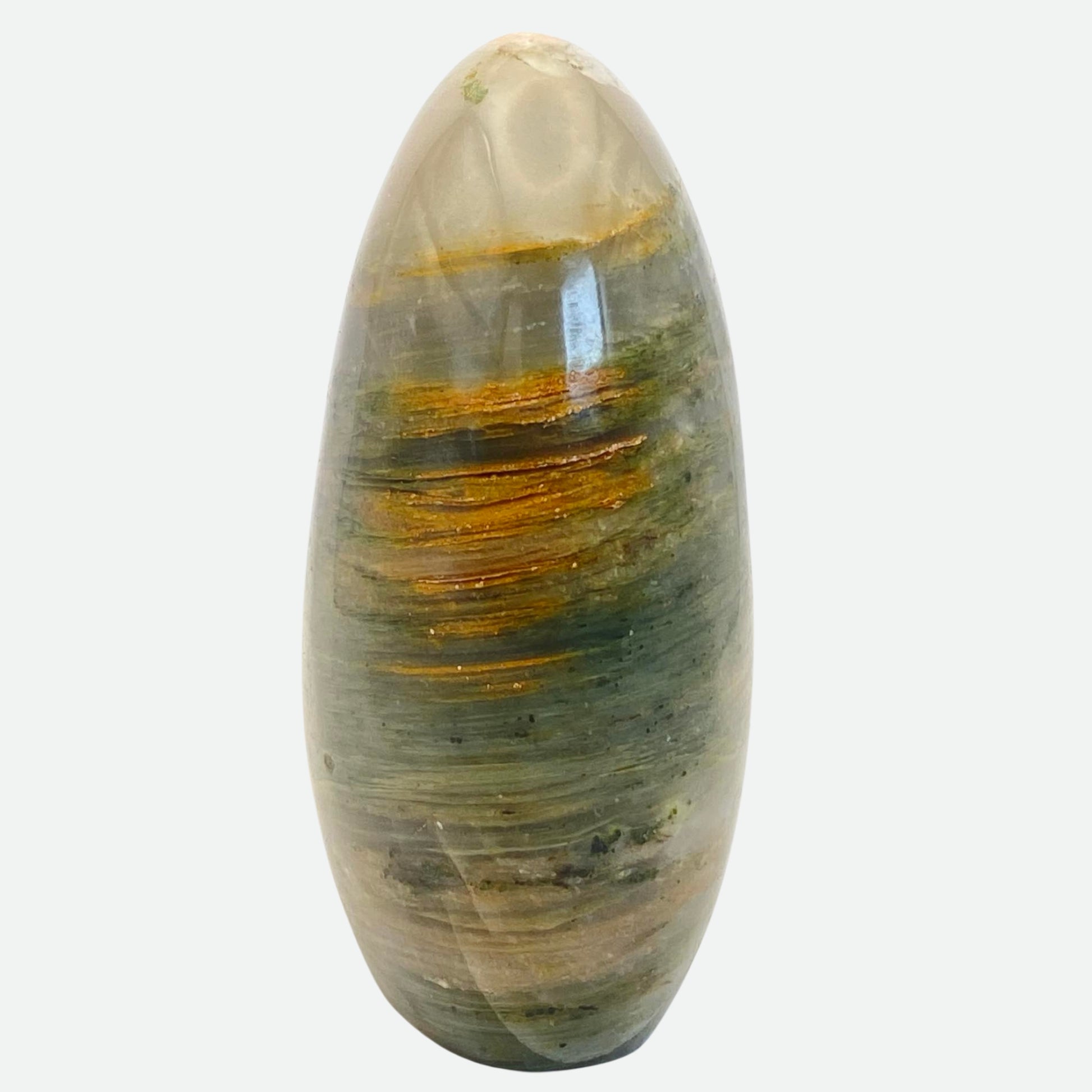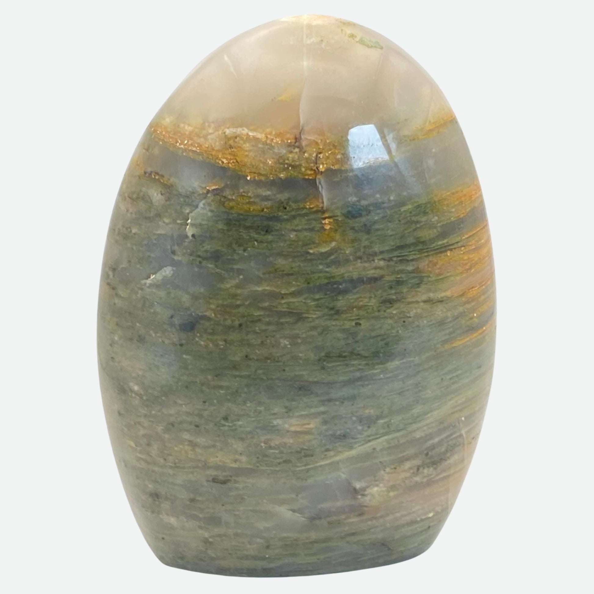 Green Agate is a type of silica mineral that is highly sought after for its vibrant colours. Its varying shades of green can appear almost translucent, like the depths of an enchanted forest, or deep and opaque. Throughout the ages, it's been used in jewellery, sculptures, and other decorative items. Ancient Egyptians used it to create statues and artwork, while Ancient Greeks believed it held magical powers, and even included it in their mythology. Associated with the Heart chakra, it promotes strong feelings of harmony, health and abundance, and its calming energy aids with emotional stability. The perfect stone to help soothe anxiety and reduce stress.