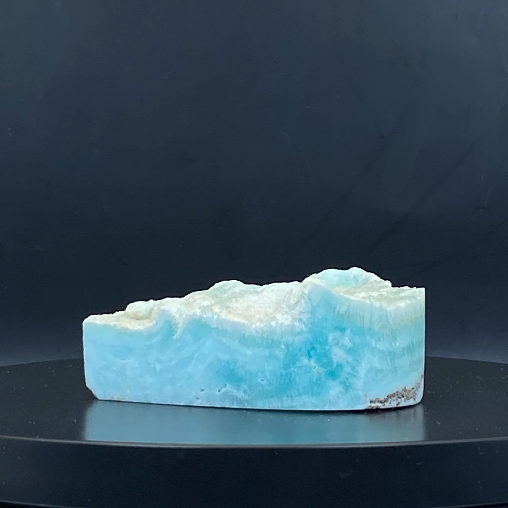Hemimorphite is often confused with Smithsonite - as the colours are similar - but you can easily tell the difference between the two crystals by its surface structure. In the case of Hemimorphite (a zinc silicate), it normally has an elongated crystal structure (bladed crystals) on the broken surface, with natural pit and/or druzy cavities. Smithsonite (a zinc carbonate) is usually a much smoother, slightly curved structure with no signs of bladed crystals.