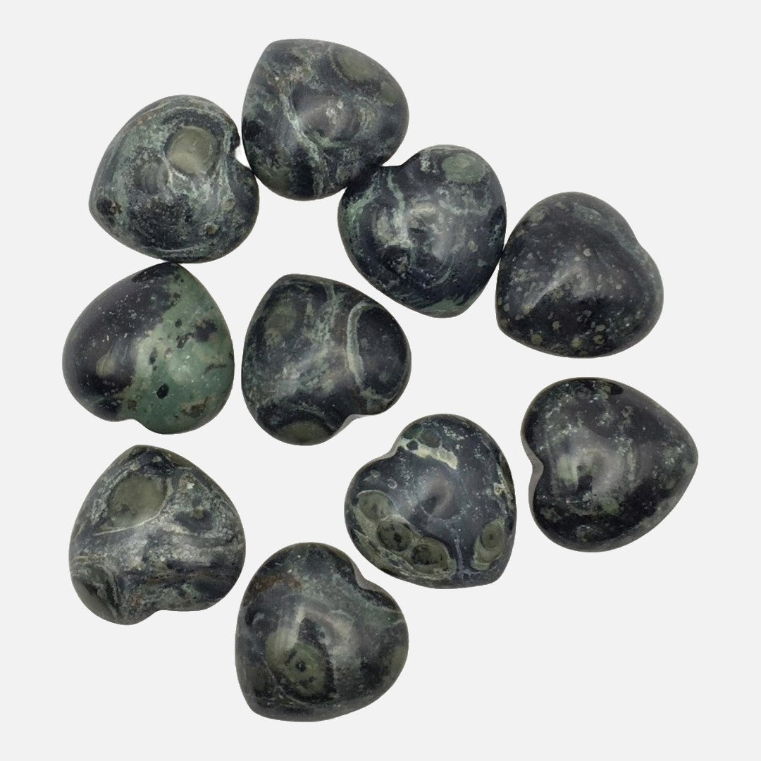 Kambaba Jasper, also known as Crocodile Rock or Green Stromatolite Jasper, is an extremely old stone dating back to 3 billion years ago. It is classified as a stromatolite, which refers to the clump of fossilised algae that created this mineral. Kambaba is a stone of peace and tranquillity, imbued with the nourishing green energy of nature. Its dark mystic circles and deep green swirls comforts and protects, calms and relaxes, soothing troubled minds and restoring balance to the body and spirit. Its slow steady frequency expands one's ability to focus and is a remarkable aid in meditation, granting the release of negative thoughts and feelings, especially one's consciousness on a continual basis. Stimulating the Heart chakra, it draws wisdom from its ancient life energies and encourages one to open the heart to loving the self and others more fully, and increases the ability to receive love in return.