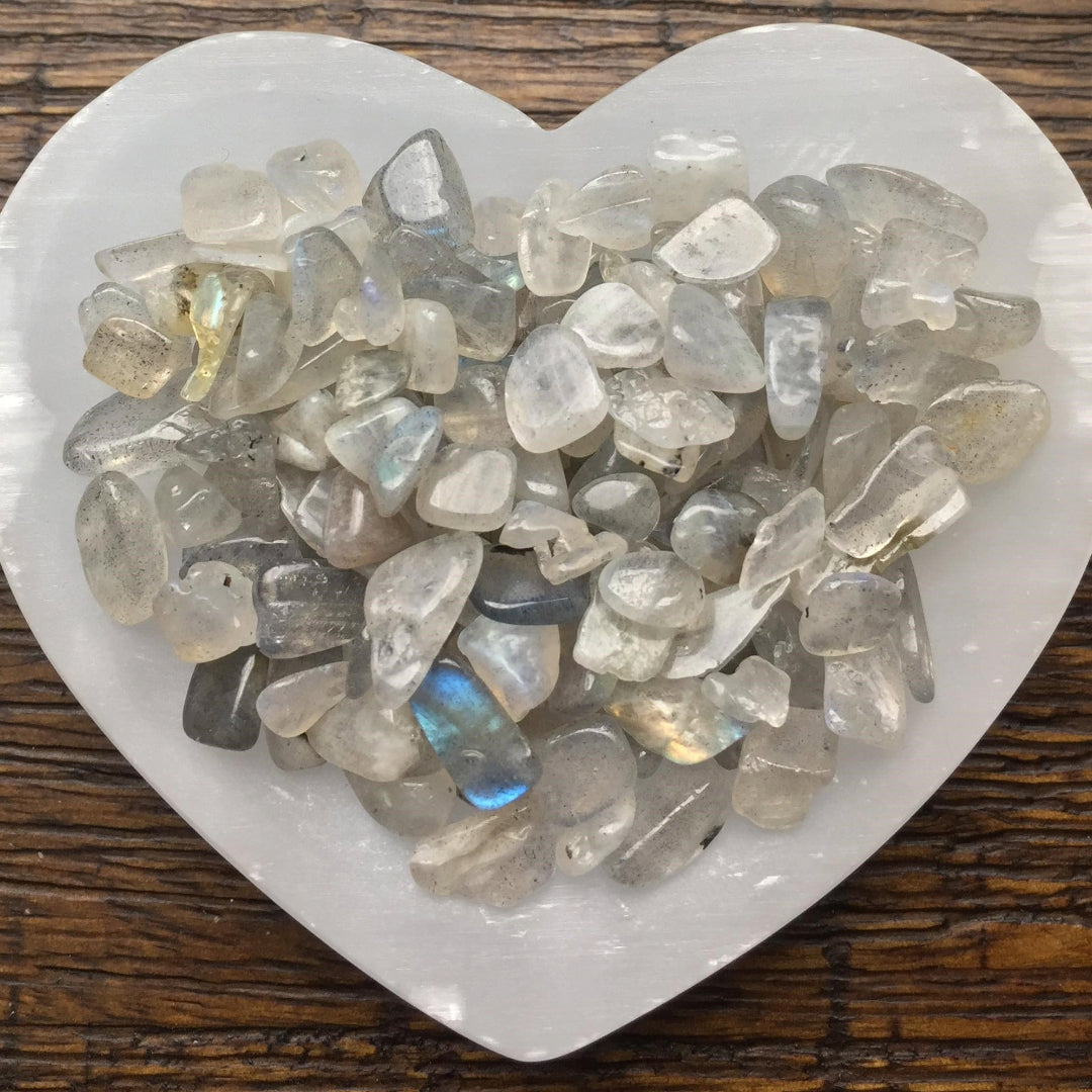Labradorite is considered a tremendously spiritual stone, especially helpful for people who tend to overwork. It helps you regain energy while aiding the body and spirit in healing itself. It's considered one of the most powerful protectors, creating a shield for auras and protecting against negativity. It's known as a stone of transformation, enhancing strength of will and inner worth. Said to stimulate the Throat chakra, and is an excellent stone for awakening one's own awareness of inner spirit, intuition and psychic abilities.