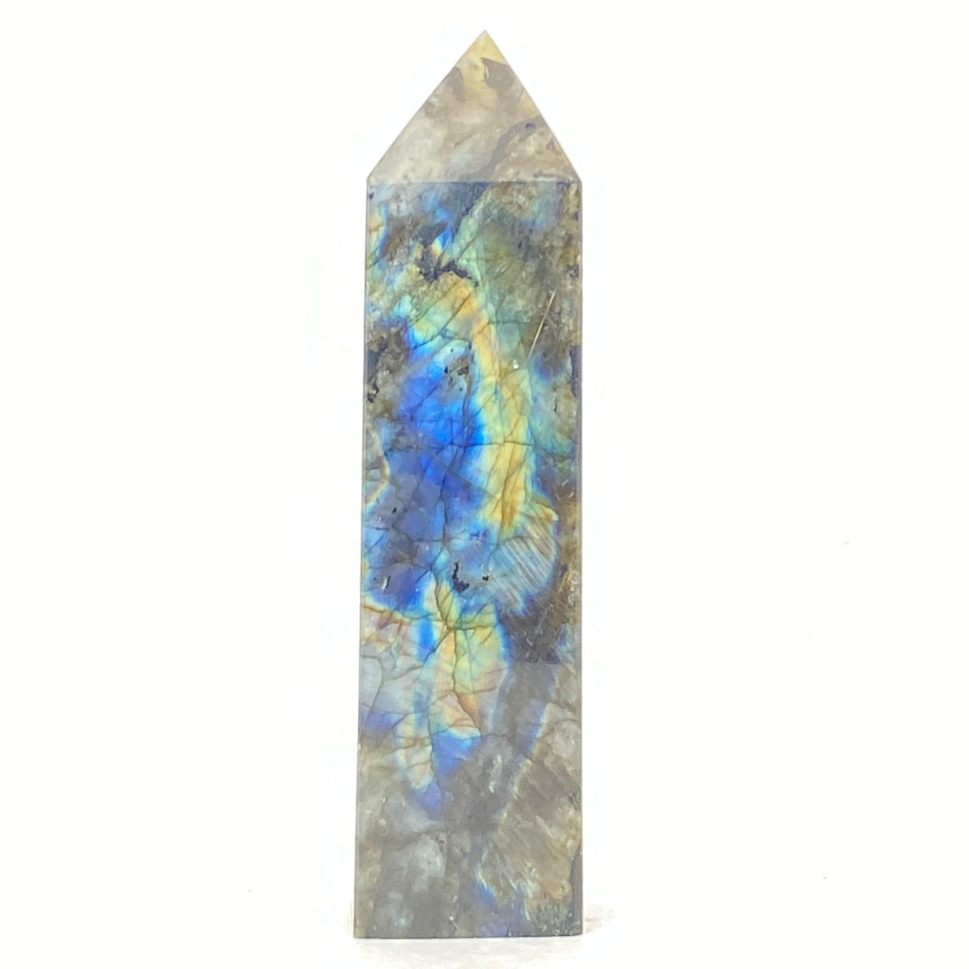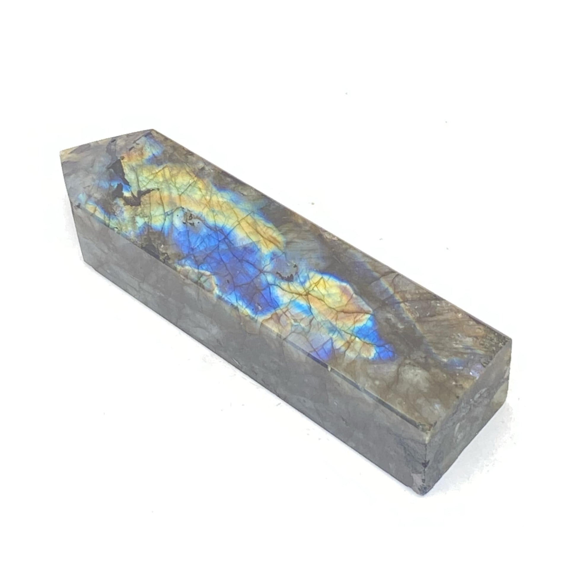 Labradorite is considered a tremendously spiritual stone, especially helpful for people who tend to overwork. It helps you regain energy while aiding the body and spirit in healing itself. It's considered one of the most powerful protectors, creating a shield for auras and protecting against negativity. It's known as a stone of transformation, enhancing strength of will and inner worth. Said to stimulate the Throat chakra, and is an excellent stone for awakening one's own awareness of inner spirit, intuition and psychic abilities.