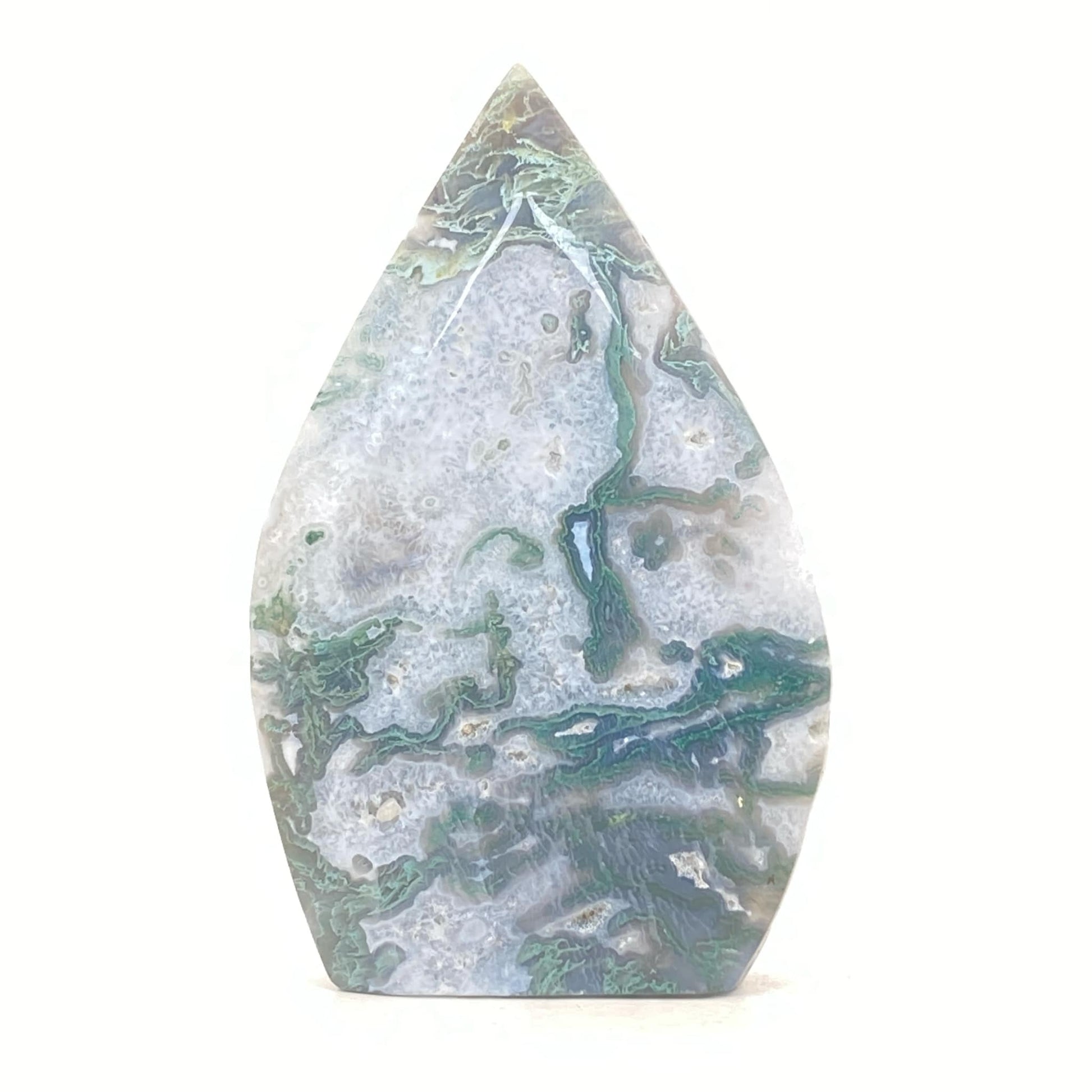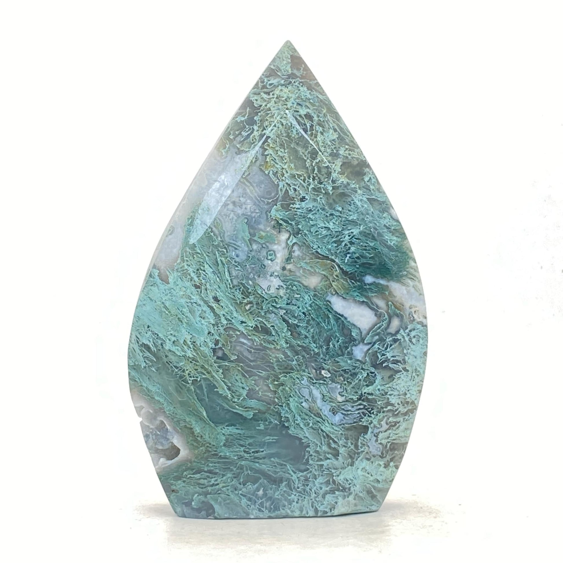 Agate enhances mental function, improves concentration, and enhances perception and analytical abilities. It is a soothing and calming gemstone that heals inner anger, anxiety and helps in the strengthening of relationships. Moss Agate aids you to correct imbalances between the two sides of the brain. It resonates a heart-based vibration and has a balanced, enduring energy and grounding ability. Known to aid abundance and prosperity, and stimulates creativity.