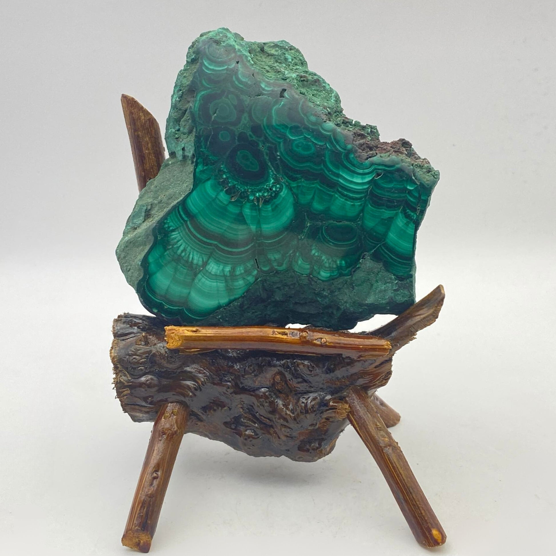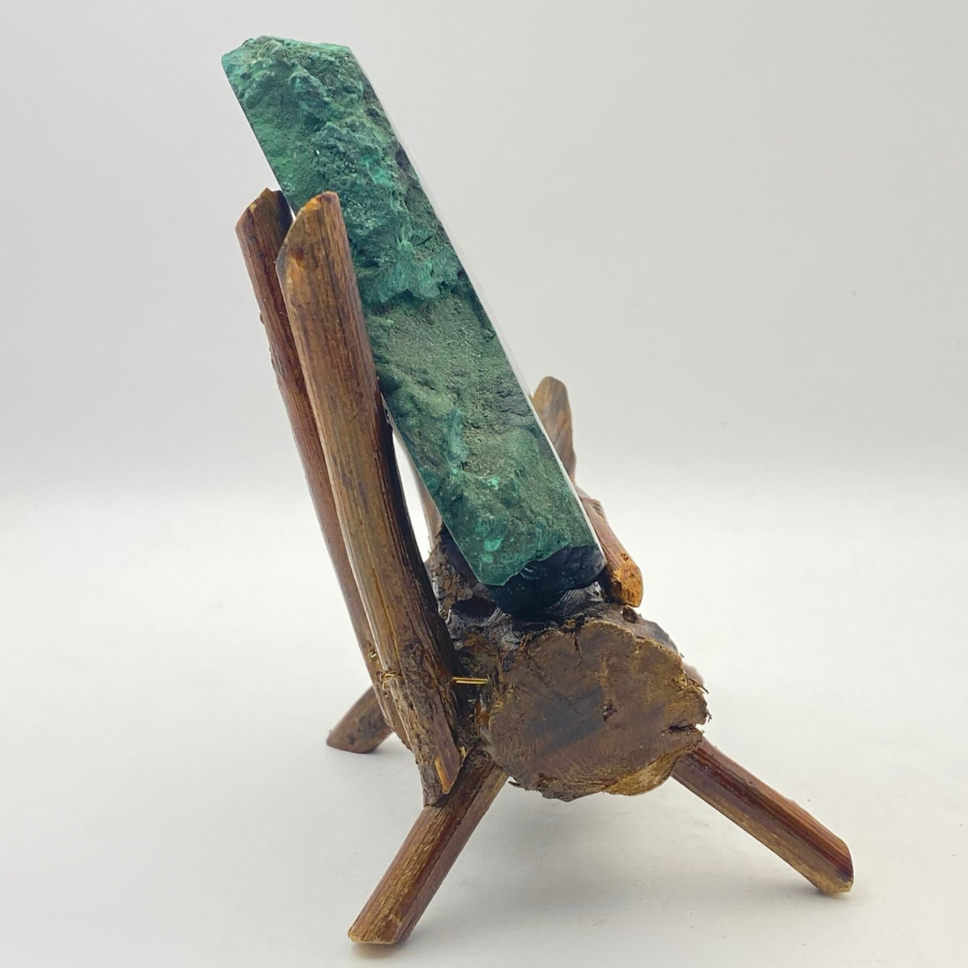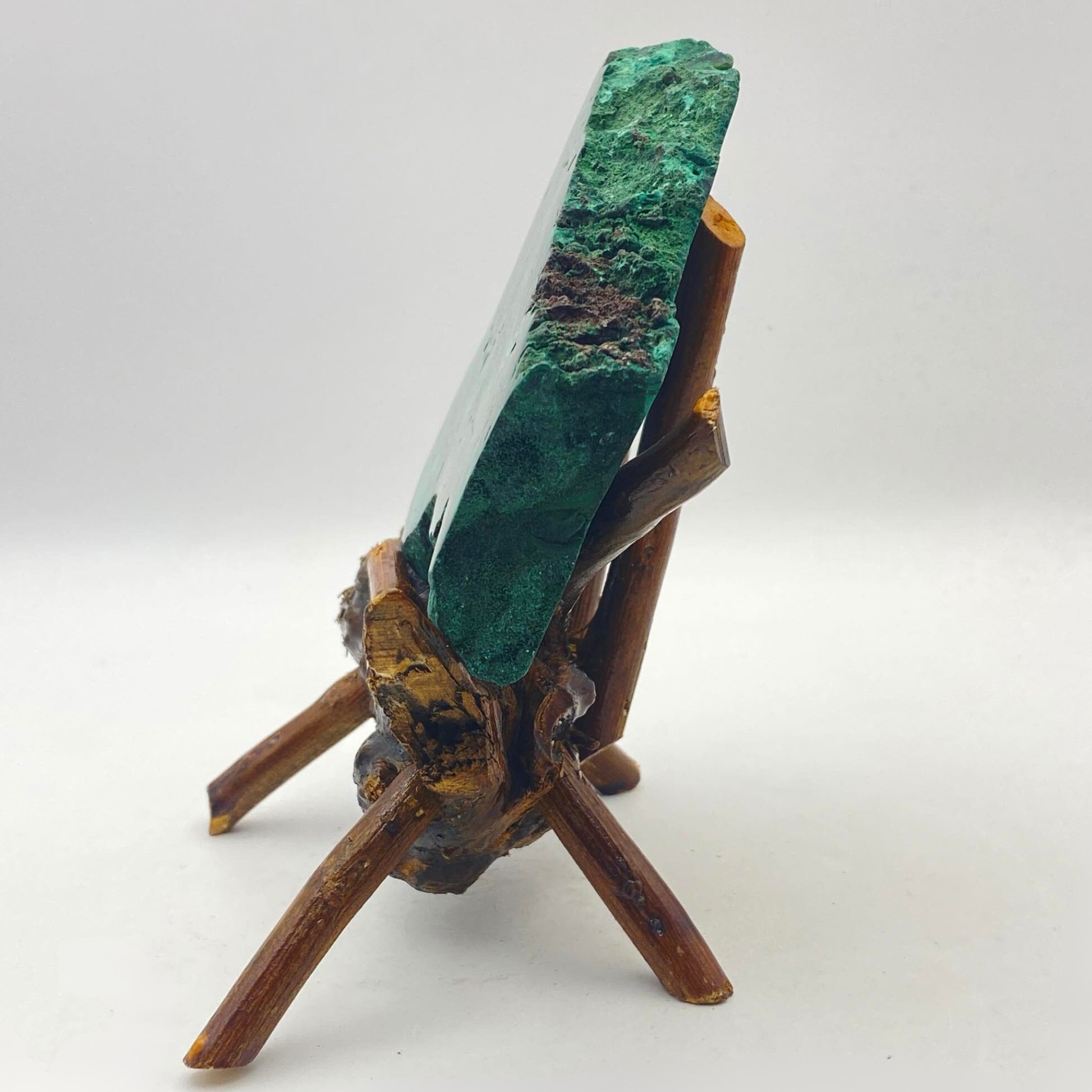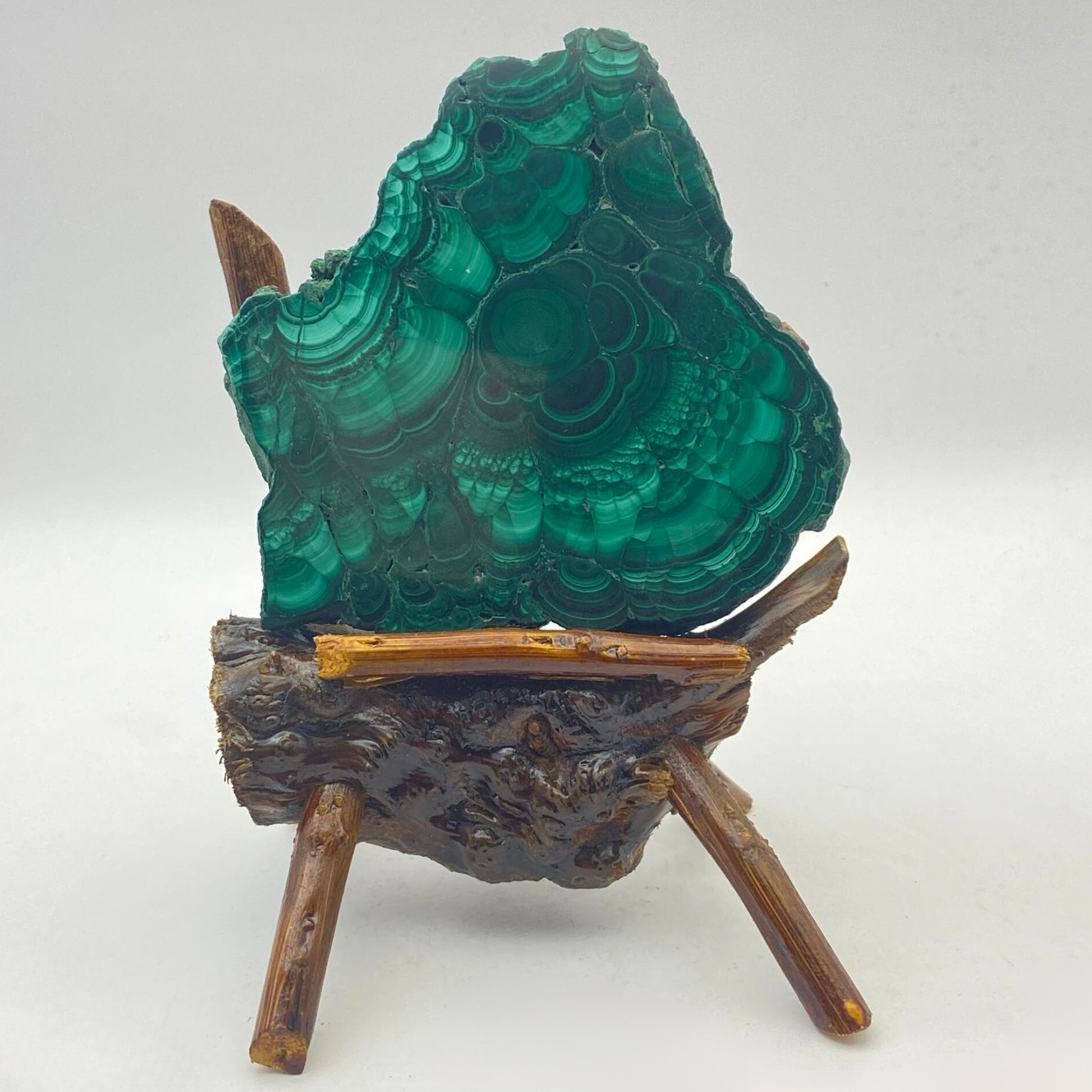 Natural Malachite slab with a FREE one-of-a-kind, handmade wooden stand!