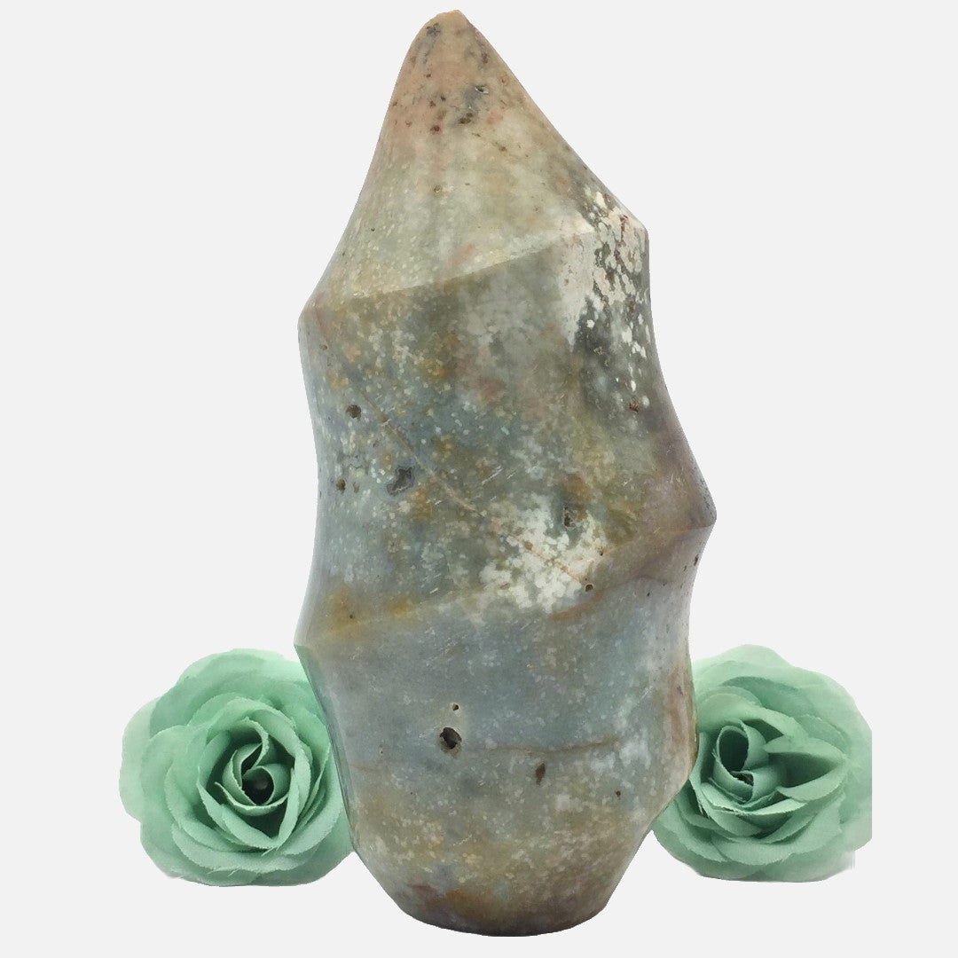 Ocean Jasper is an excellent healing stone that helps you if you need a lift. It releases negative feelings and aids you to feel more optimistic. It's energy stimulates the Heart chakra, encouraging feelings of joy, happiness and elevated spirits. Vibrates within the Throat chakra, aiding your communication. Deposits of this stone are found only in one small place in Madagascar. It is not easy for the collector's to obtain as the location where it is found is in a small opening or cleft at the bottom of a cliff. It can only be taken out at low tide.