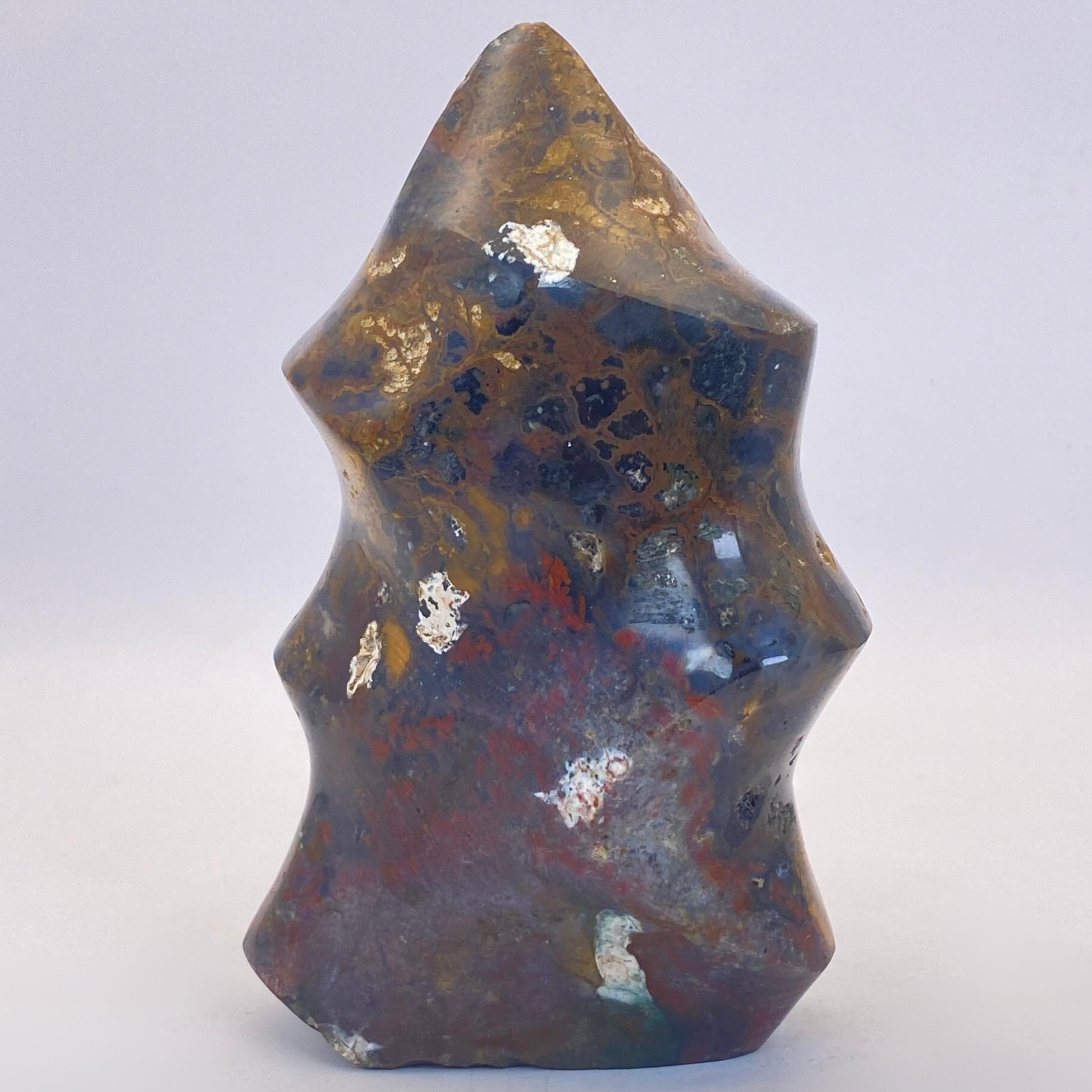 Ocean Jasper is an excellent healing stone that helps you if you need a lift. It releases negative feelings and aids you to feel more optimistic. It's energy stimulates the Heart chakra, encouraging feelings of joy, happiness and elevated spirits. Vibrates within the Throat chakra, aiding your communication. Deposits of this stone are found only in one small place in Madagascar. It is not easy for the collector's to obtain as the location where it is found is in a small opening or cleft at the bottom of a cliff. It can only be taken out at low tide.