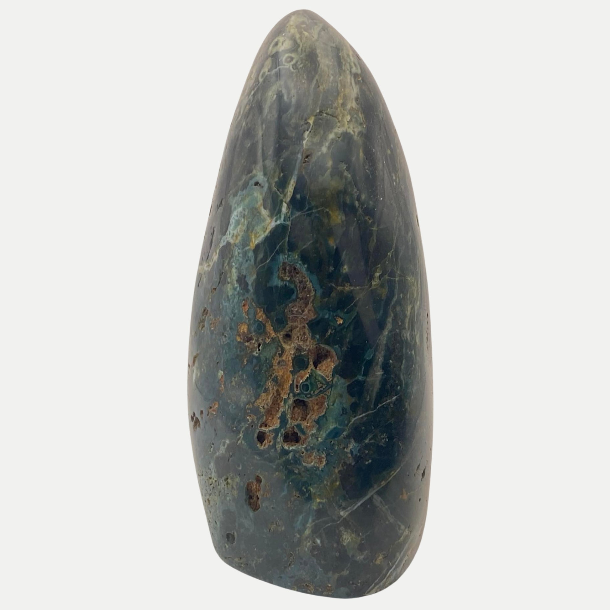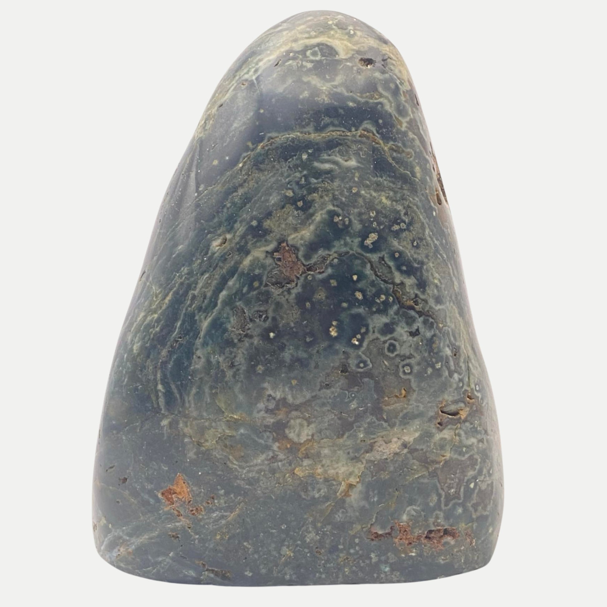 This large orbicular Ocean Jasper freeform is a beautiful mix of moss-green and deep-aqua, and has small druzy pockets.