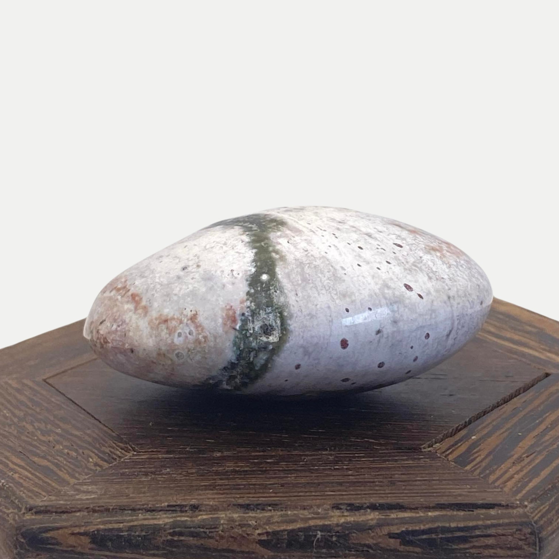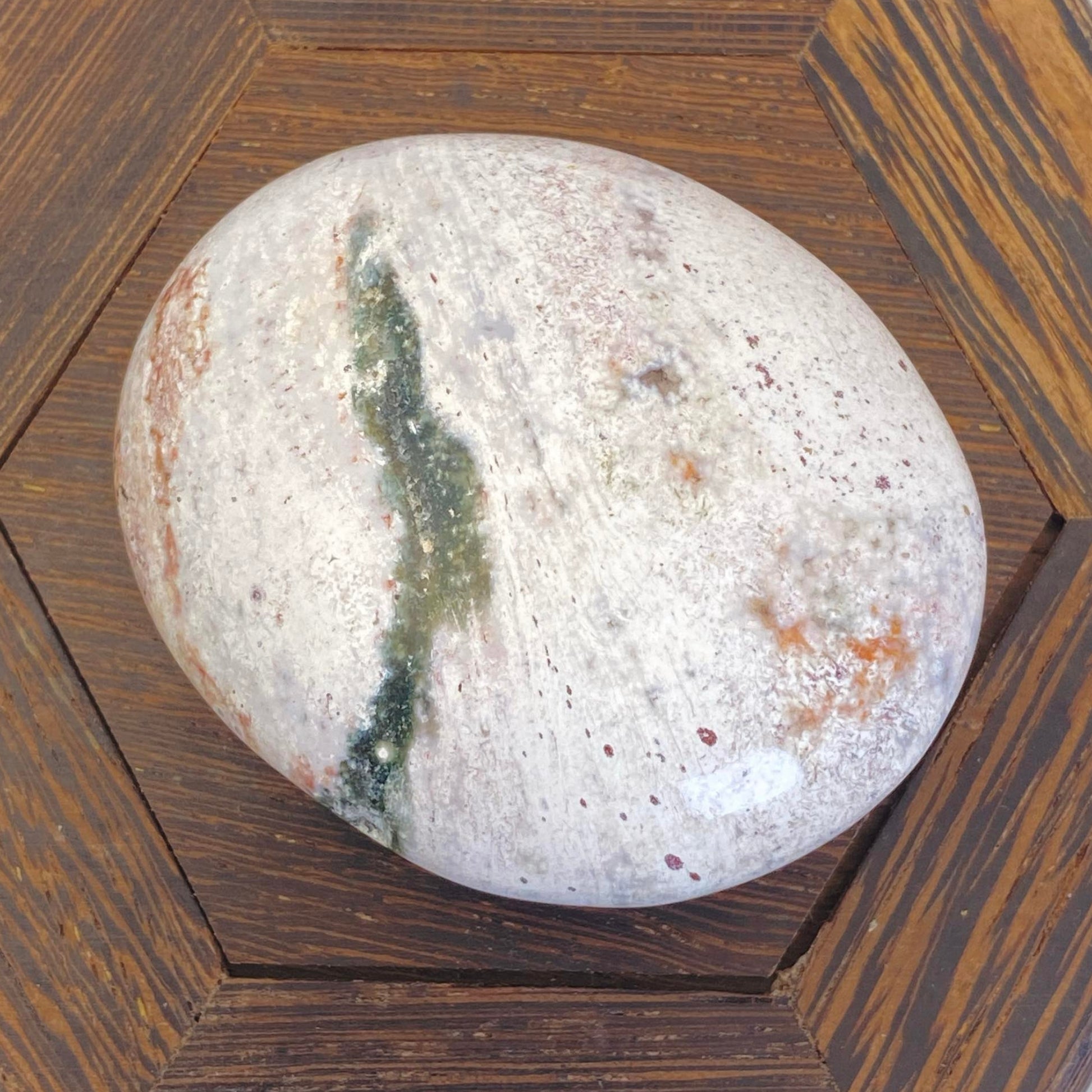 Ocean Jasper is an excellent healing stone that helps you if you need a lift. It releases negative feelings and aids you to feel more optimistic. It's energy stimulates the Heart chakra, encouraging feelings of joy, happiness and elevated spirits. Vibrates within the Throat chakra, aiding your communication. Deposits of this stone are found only in one small place in Madagascar. It is not easy for the collector's to obtain as the location where it is found is in a small opening or cleft at the bottom of a cliff. It can only be taken out at low tide.
