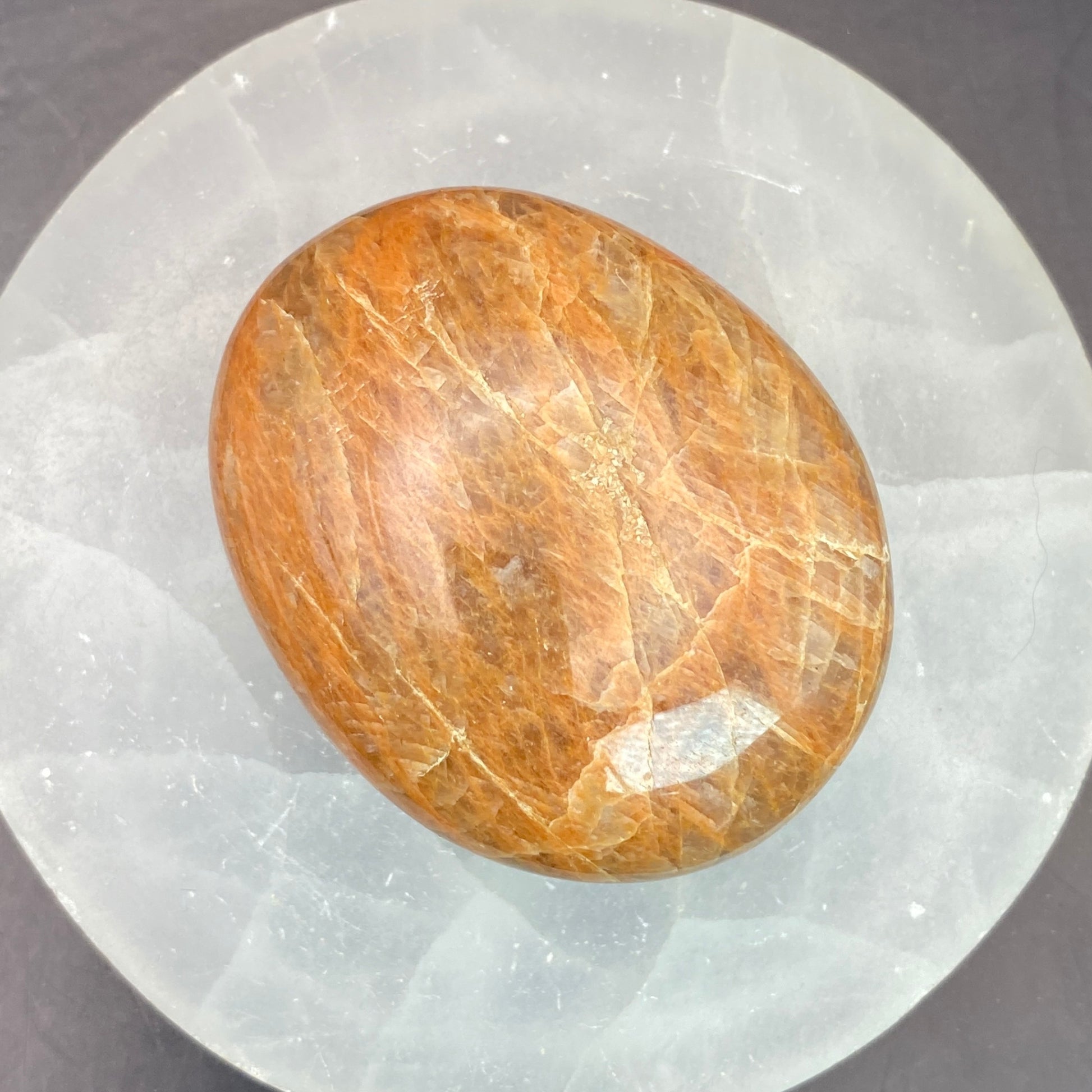 Peach Moonstone's loving energy promotes the divine in all situations and can be an emotional support for intuitive or sensitive children. It is a more inward-loving mineral and helps reignite your passion for the things that make you happy in this world. It cultivates a sense of safety and a willingness to be vulnerable in a healthy relationship. It soothes worry and anxiety, and brings out the best in people.