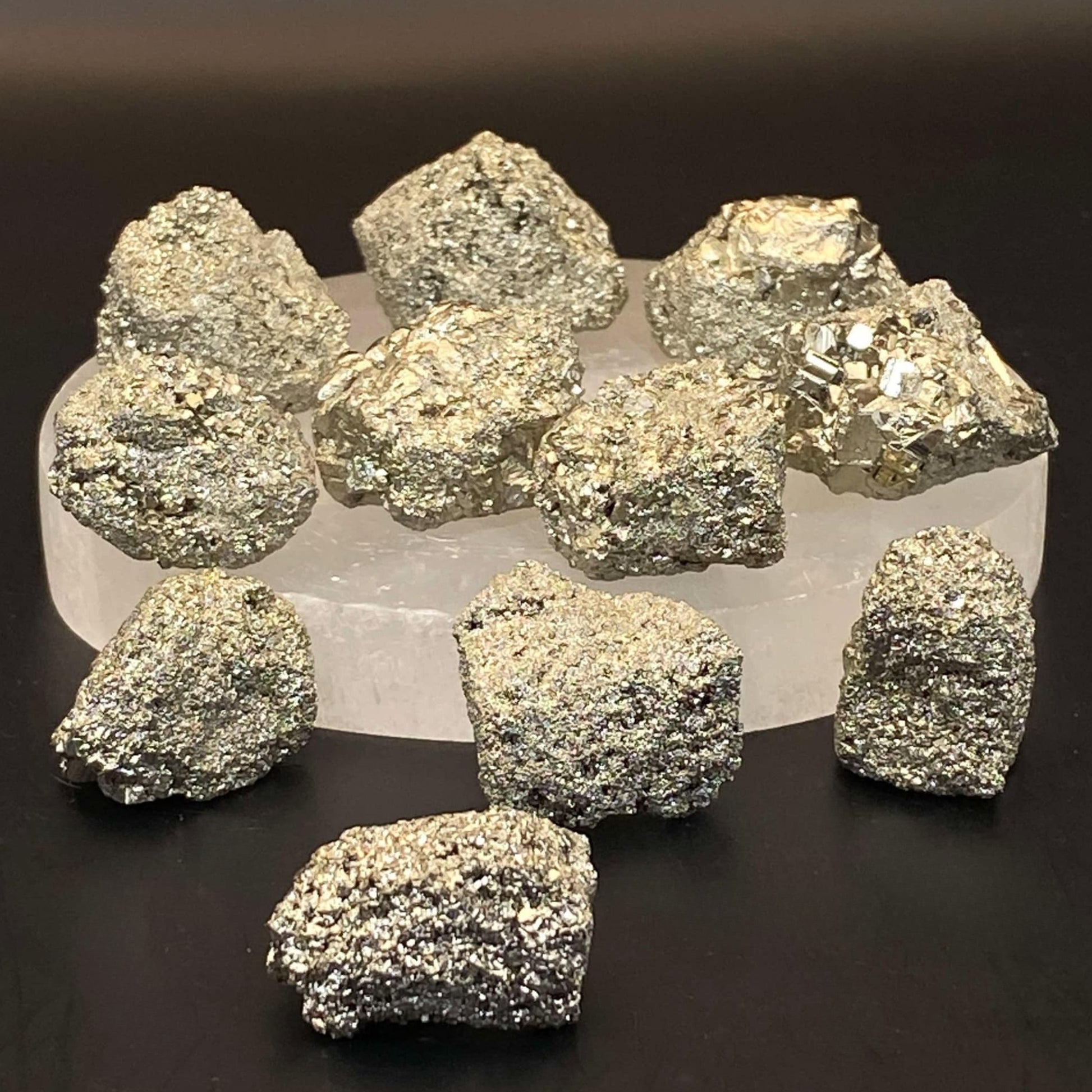 Pyrite (also known as Fool's Gold) reflects the energy of Gold, bringing success, enthusiasm, happiness and power. It is traditionally the colour of kings, riches, and the sun. A powerful protection stone, it shields and protects against all forms of negative vibrations, working on the physical, etheric and emotional levels. Also stimulates the intellect and enhances memory, helping to recall relevant information when needed. Pyrite's meaning is purity and unblocks creativity. The ancient Incas used Pyrite for meditation and divination.