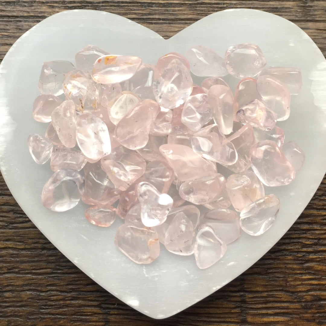 Known as 'the Heart Stone', Rose Quartz purifies and opens the heart at all levels to promote love, self-love, friendship, deep inner healing and feelings of peace. Calming and reassuring, it helps to comfort in times of grief. It dispels negativity and protects against environmental pollution, replacing it with loving vibes. It encourages self-forgiveness and acceptance invoking self-trust and self-worth. Rose Quartz speaks directly to the Heart chakra, dissolving emotional wounds, fears and resentments, and circulates a Divine loving energy throughout the entire aura. Reawakening the heart to its own innate love, it provides a deep sense of personal fulfilment and contentment, allowing one the capacity to truly give and receive love from others.