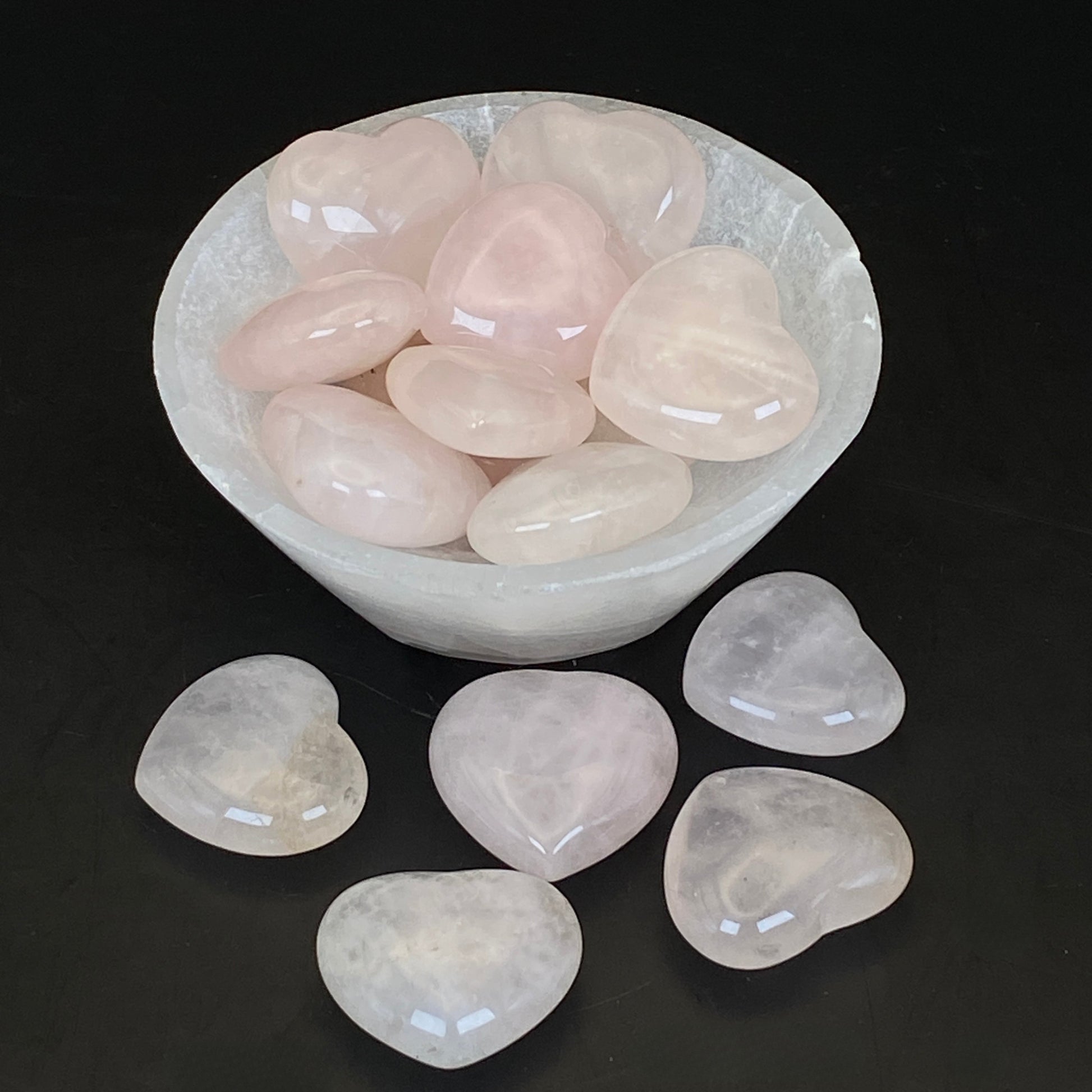 Known as 'the Heart Stone', Rose Quartz purifies and opens the heart at all levels to promote love, self-love, friendship, deep inner healing and feelings of peace. Calming and reassuring, it helps to comfort in times of grief. It dispels negativity and protects against environmental pollution, replacing it with loving vibes. It encourages self-forgiveness and acceptance invoking self-trust and self-worth. Rose Quartz speaks directly to the Heart chakra, dissolving emotional wounds, fears and resentments, and circulates a Divine loving energy throughout the entire aura. Reawakening the heart to its own innate love, it provides a deep sense of personal fulfilment and contentment, allowing one the capacity to truly give and receive love from others.