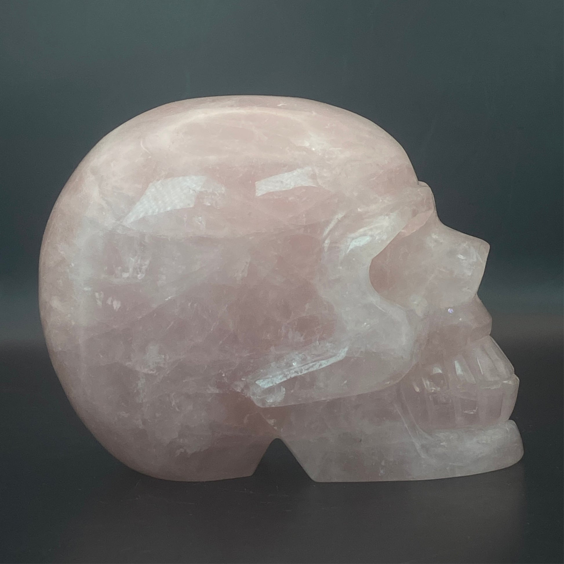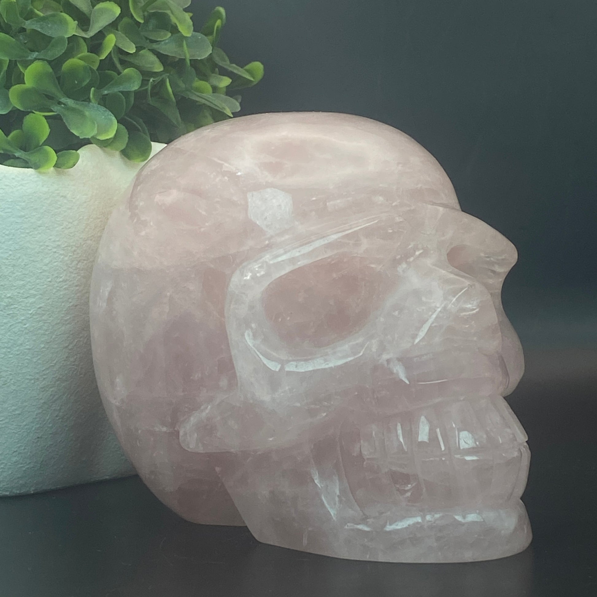 Stunning, high-quality Rose Quartz skull from Brazil. Beautifully carved and polished, and feels wonderful.Ā